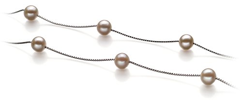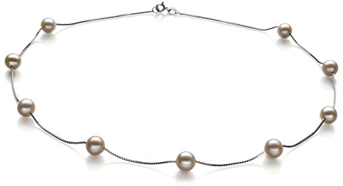Show her just how much she means to you with the gift of this gorgeous freshwater cultured pearl necklace. The cultured pearls are a medium size, measuring 6.5mm to 7.5mm, and with 17.5 inch sterling silver with white gold plating chain. Overall the necklace has a rating of AA, with a higher mark for its exceptional luster. The versatile size and shape of the cultured pearls make this a piece worthy of any occasion, formal or casual. The necklace arrives in a velvet-lined box that is ready for giving. In addition, we can wrap it for you.