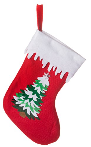 Red Felt Christmas Tree Stocking 12", Holiday Home Decor, Party Decorations, Gifts and Treats Bag - Set of 6