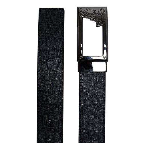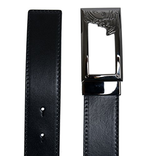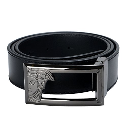 -. Binding : Apparel -. Brand : Versace -. Department : mens -. Feature : The belt runs size down. / Material: Genuine Leather. Belt Width: 1.25" / SKU: AZ-4291. Model:V91S200 VM00043 V000 / Made in Italy / Dust bag and original box are included. Buckle can be detached and used with different belt. -. ProductGroup : Apparel -. ProductTypeName : ACCESSORY -. Title : Versace Collection Men's Black Leather Buckle Decorated Belt