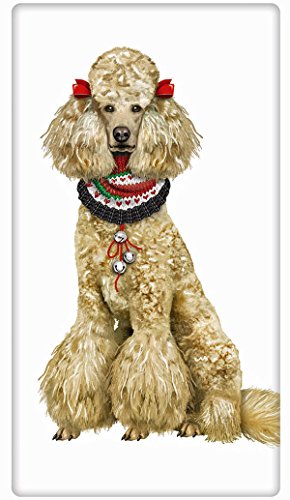 Winter Holiday White Poodle Dog 100% Cotton Flour Sack Dish Tea Towel - Mary Lake Thompson 30" x 30"