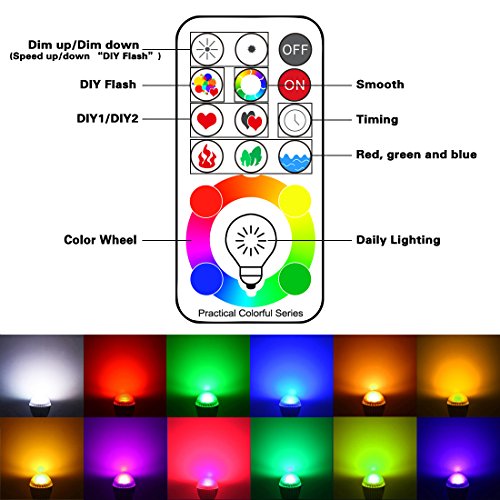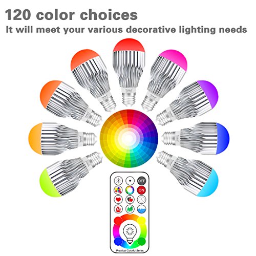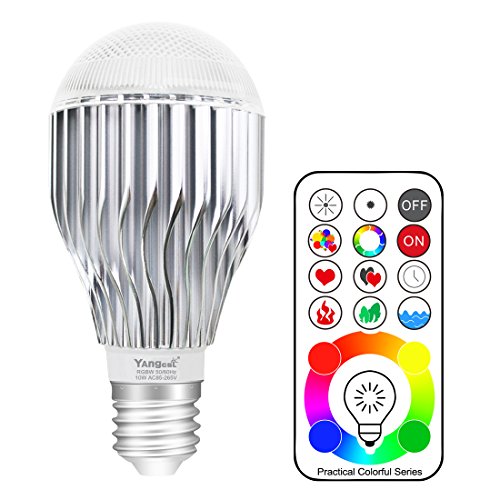 Yangcsl Remote Controlled A19 10W RGBW Color Changing LED Light Bulb, RGB + Daylight White, 60W Incandescent Bulb Equivalent, 120 Color Choice, E26 Medium Screw Base