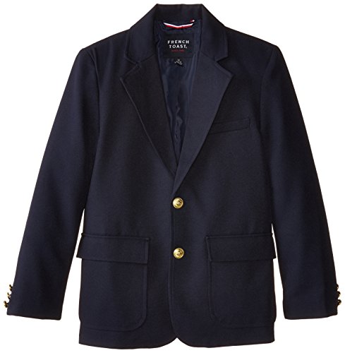 Preppy style made easy with this gold-button blazer that will keep him looking sharp no matter what the dress code. 100% polyester Classic blazer fitEmbossed gold color buttons at front and sleeves2 mock pockets at frontPocket at chestFully lined Machine washableImportedFeature