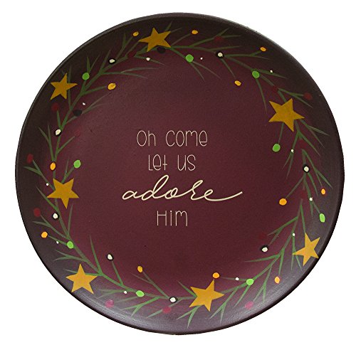 - Features a star and berry wreath with the words 'Oh come let us adore him'