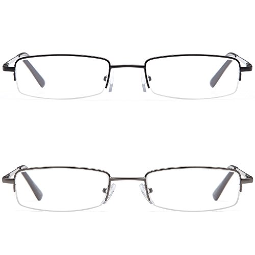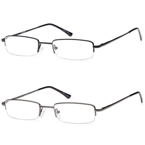 DOUBLETAKE: 2 Pairs of Classic Spring Hinged Half Rim Reading Glass with Slim Hard Case for Men and Women