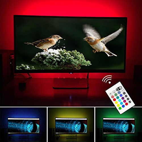 - EASY TO USE: The tv led strip lights sticky original 3M adhesive tape and PU glue on the strip light,moisture-proof, grease-proof, dust-proof and heat resisting,cleaning your TV with isopropyl alcohol before sticking, Powered by 5V DC USB,plug and play.fit every TV's USB port,wide receiving angle of the IR,8-10 meter controller distance,just use the remote controller to choose the color you want,it is very convenient.