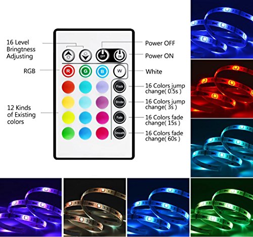 - PERFECT FIT:The led strip lights use brand led and design for 32"-60" flat screen TV,you can buy 2 sets if tv over 65".The led light strip to create a romantic home theater , display 16 fantastic colors, 4 dynamic modes, dimmable, and can remember the previous color setting. Sync switch on/off with TV as it powered by TV usb port.