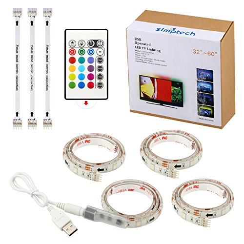 Simptech Led Strip Lights TV Backlight, Bias Lighting for 32 to 60 Inch Flat HDTV, USB Powered, RGB Changing Color,Ambient Background Lighting for TV (32"-60")