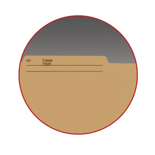 -. Feature : An economical way to file your documents / Tab P.R.Inted with "NAME/NOM; NO." on both sides / An office staple / Tab P.R.Inted with "NAME/NOM; NO. on both sides / Contains 10% recycled content, 10% post-consumer material / Letter Size 11-5/8" W x 9-1/2" H Overall, 9" H Body