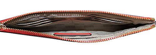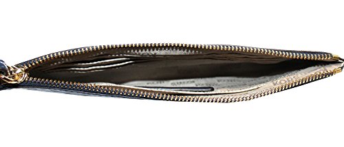 Product Description Large leather clutch with top zip. Interior: 1 main compartment. 1 medium side pocket. multiply slip pockets.Exterior: beautiful design ,gold tone hardware. Michael Kors Logo. Wrist leather strap. New style 2017/2018. Authentic.MEASUREMENTS : 9"X4.5" 0