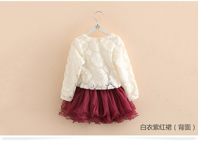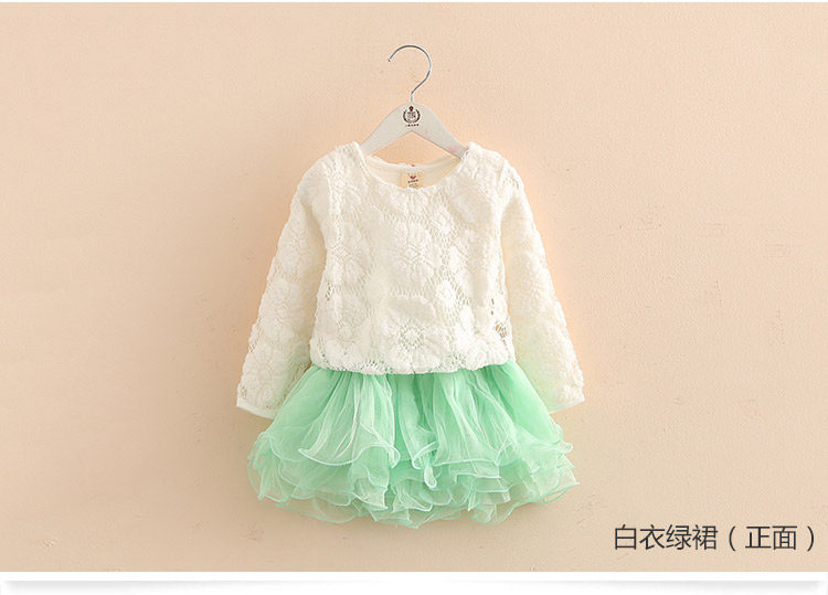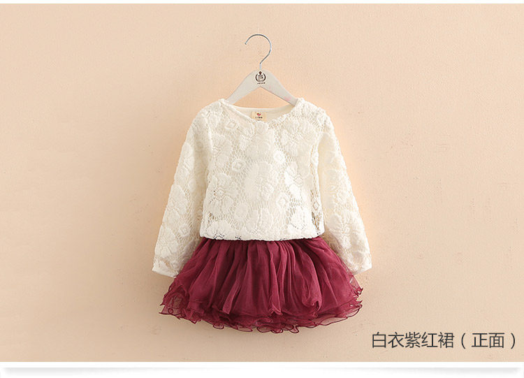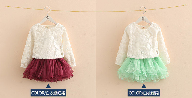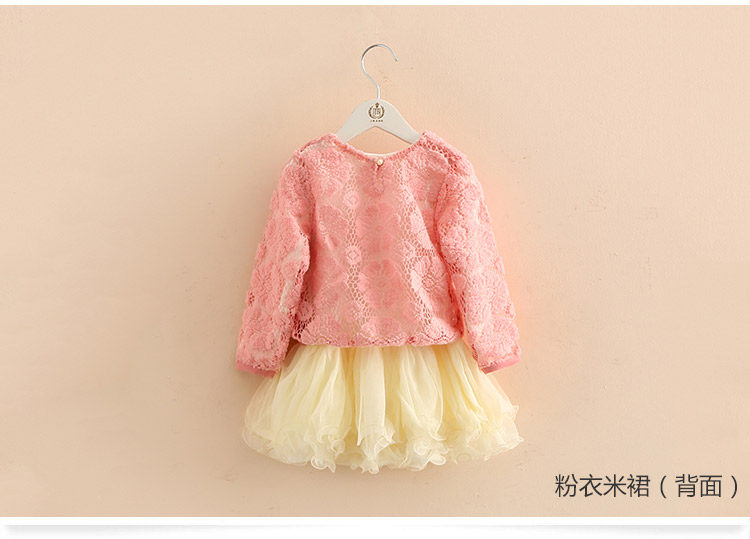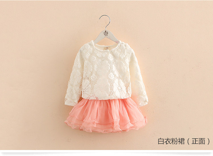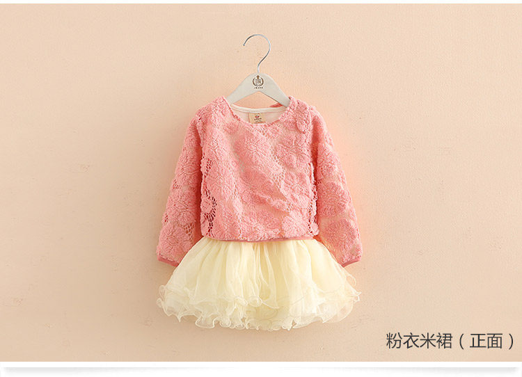 春装女童童装套装 宝宝儿童蕾丝蓬蓬裙两件套套裙
