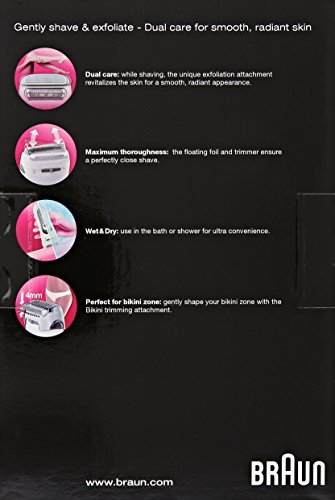 The Braun Silk-epil Lady Shaver - Gently Shave and exfoliate. Dual care: While shaving, the unique exfoliation attachment revitalizes the skin for a smooth, radiant appearance.