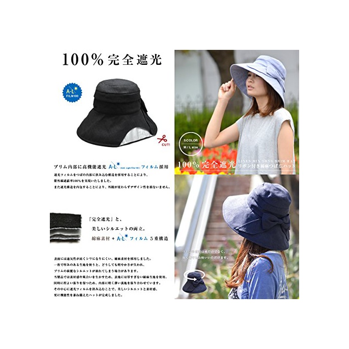 원본상품명: (トライバル)TRIBAL 完全遮光ハット 超力UVカット フェミニンBIGリボン付き綿麻つばハット