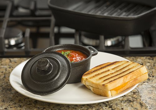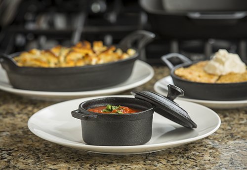 TableCraft CW30110 Cast Iron Round Mini Casserole with Lid Cookware, 8-Ounce, Black