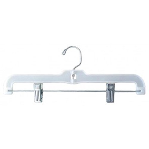 -. Feature : Traditional 14" white hi-impact plastic skirt/pant hanger with chrome hook and clips / This Jumbo weight hanger is able to support more weight and heavier garments / Manufactured in United States
