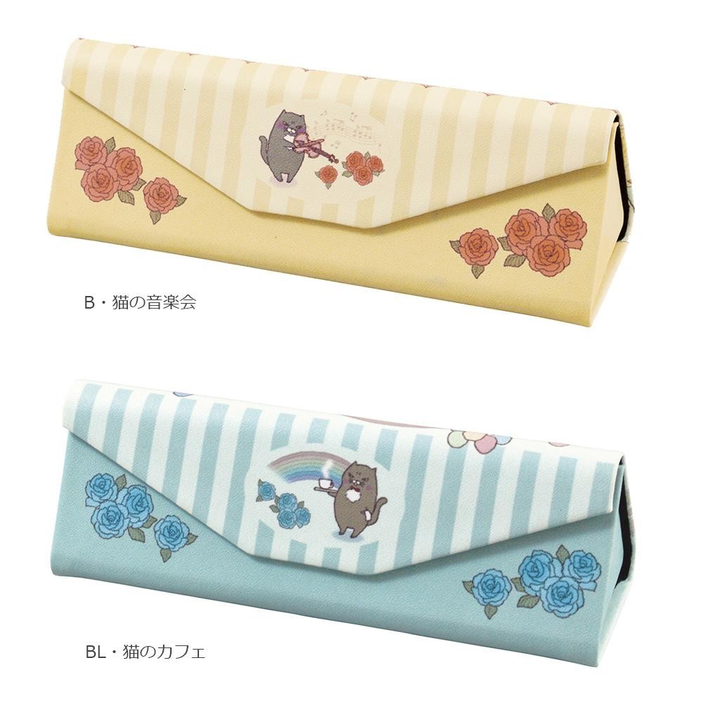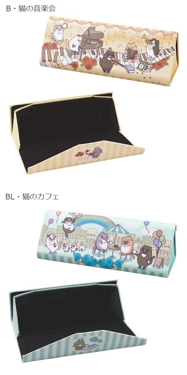 コンパクトに折りたためる可愛い猫の絵柄のメガネケース♪ケースと同じ柄のメガネ拭き付き!! |