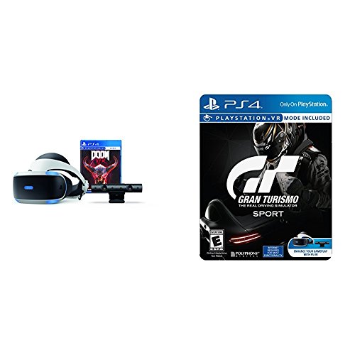 -. Feature : Bundle Includes PlayStation VR headset, PlayStation Camera, DOOM VFR game, and Gran Turismo Sport - Limited Edition. / DOOM VFR brings the fast-paced, brutal gameplay fans of the series love to virtual reality. / Simply plug your PlayStation VR and PlayStation Camera into your PS4 system and transport yourself to new gaming worlds like never before. / The Gran Turismo Sport: Limited Edition includes: GT SPORT Game Disc and Collectible Steelbook Case