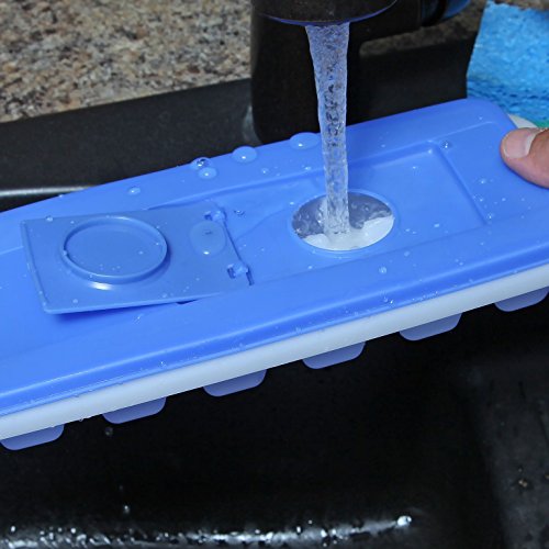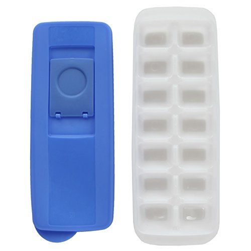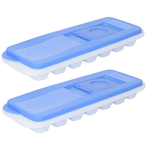 Trenton Gifts Easy Release No Spill Ice Cube Tray with Removable Cover, Stackable, Compact, Odor Free Ice Cube Tray In White With Blue Lid, Set of 2