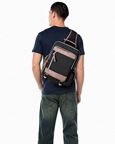 -. Feature : 10.2L*13.6H*4.4Win; 820 grams; fits a laptop up to 13''. / Retro eco-friendly casual life tyle, large size with multiple pockets, ideal for keeping personal belongings. / High quality canvas with leather decoration. / 1* front flap zipper pocket; 1* zipper pocket; 1* open pocket under the flap; 2* side pocket. The main compartment is divided into 2 compartment: 1 inner zipper pocket; 1 inner laptop pocket; 2 inner small pocket. / It is a great gift for your boyfriend, husband, father and son. Although it is not waterproof, it can also be carried for outdoor activities, such as running, cycling, camping, etc