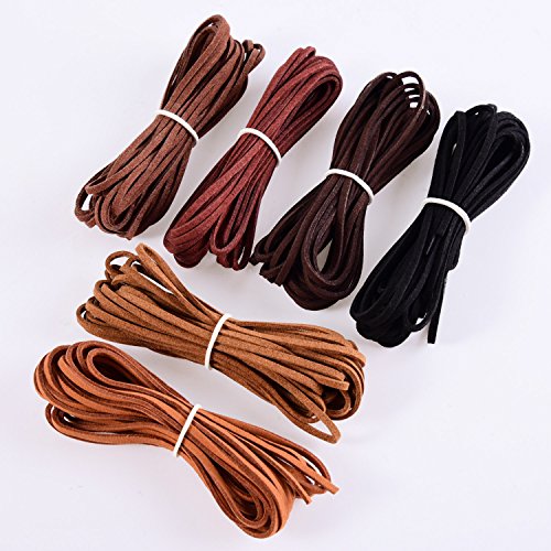 Shappy 3 mm x 5 m Leather Cord String for Bracelet Necklace Beading Jewelry DIY Handmade Crafts, 6 Pieces, 6 Colors