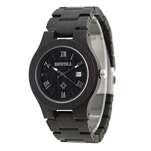 GuTe wood Quartz GuTe출품 BEWELL 목제 시계 맨즈 쿼츠 얇 유니크 날짜 가볍 심플 천연 소재 멋쟁이 흑단