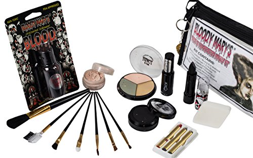 Bride Of Frankenstein Special Effects Makeup Kit By Bloody Mary - Professional Halloween Monster SFX Makeup - Includes Lipstick, Foundation, Setting Powder, 3 Crayons, 4 Brushes, Eye Shadow & Sponge