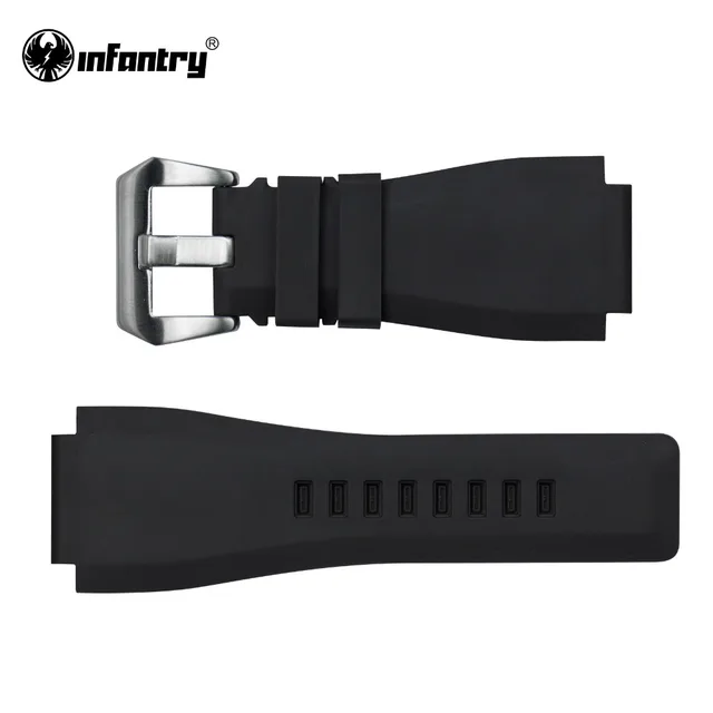 보병 24 미리메터 시계 밴드 블랙 실리콘 고무 밴드 시계 전자 손목 밴드 스포츠 시계 스트랩 교체