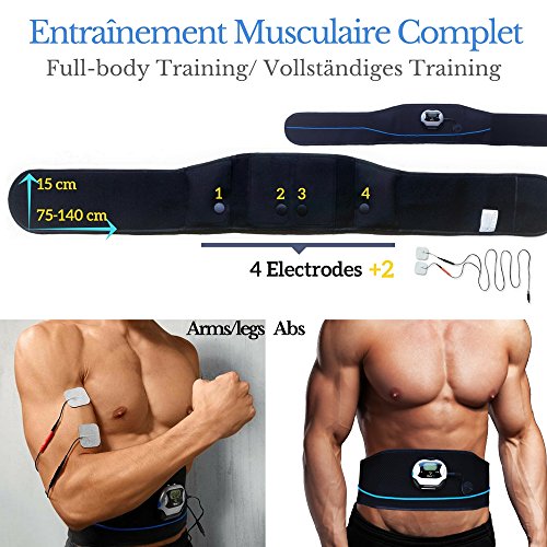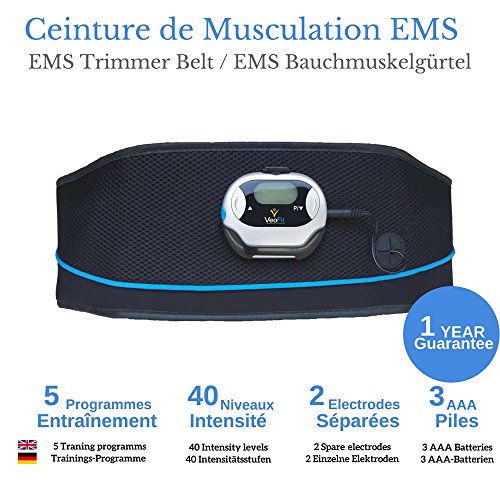 UMFASSENDE FITNESS-LOSUNG: 5 Trainings-Programme mit zunehmender Starke und 40 Intensitatsstufen, die auf Ihre Bedurfnisse angepasst werden konnen und Ihnen helfen, Ihren Fortschritt effizient zu verfolgen. Geeignet fur Taillen von 75 cm bis 140 cm und fur alle Korpertypen. Der Gurtel funktioniert mit 3 klassischen AAA-Batterien (nicht im Lieferumfang enthalten, da sie extrem leicht entzundlich sind, auslaufen und das Gerat moglicherweise beschadigen konnten).
