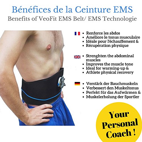 VeoFit VEOFIT EMSBauchmuskelgurtel zur Elektrischen Muskelstimulation: festigt, starkt und strafft die Bauchmuskeln und flacht den Bauch ab / passende Einheitsgrosse fur alle / Manner & F