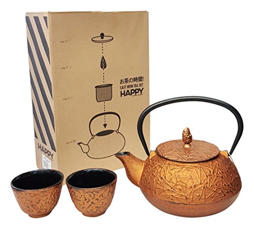 -. Title : Happy Sales HSCT-PNC17 , Cast Iron Tea Pot Tea Set Pine Copper