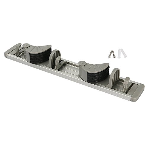 Mop and Broom Holder, MCIRCO Wall Mounted Mop Hanger Broom Organizer Key Rack Towel Hooks Garage Storage Racks, 2 Position with 3 Utility Hooks for Various Tools (Grey)