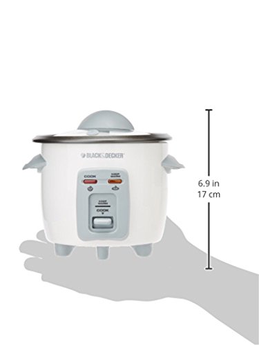 Perfect for smaller families, the Black & Decker RC3203 makes 3 cups of cooked rice in a non-stick, dishwasher safe pot. When cooking is done the unit automatically switches from cook to warm. You'll enjoy the convenience of the included rice scoop and measuring cup.