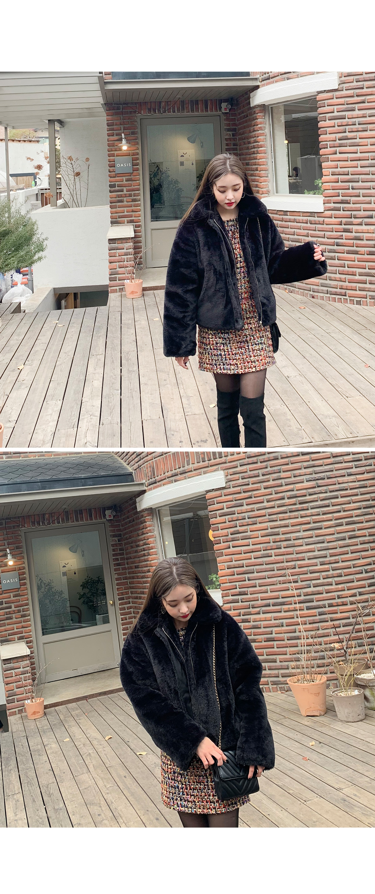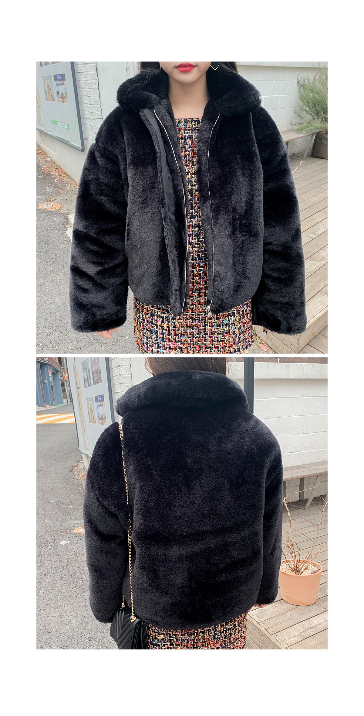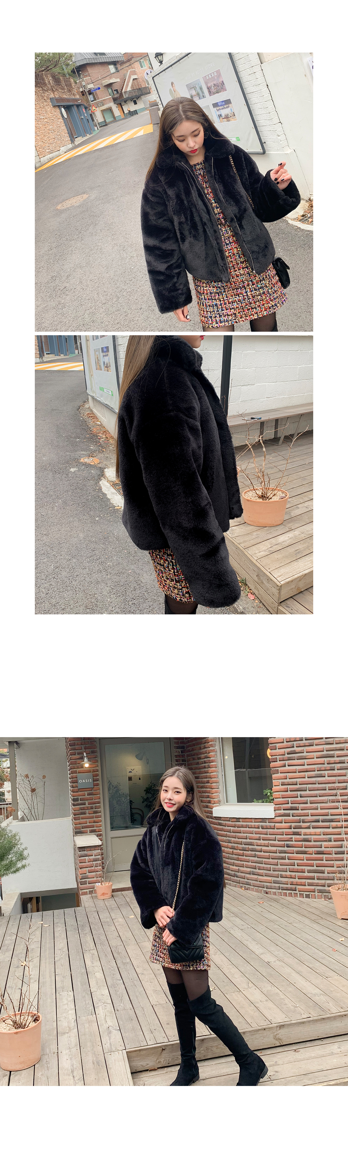 ![]() "로지 퍼 자켓" 가벼운 기장감으로 귀여운 무드와 스타일리쉬함을 더해드릴 퍼자켓으로 업데이트 전부터 문의가 정말 많았던 퍼자켓을 소개해요 특유의 부해보이는 느낌이 없는 퍼 스타일로 귀여운 카라 스타일로 제작되어 있고 추울때는 카라깃을 세워 연출해 주시면 더욱더 따뜻해요 도톰한 두께감으로 제작되어 보온성을 높여주었으며 여성스럽고 고급스러운 무드를 더해드린답니다. 모델처럼 원피스에도 잘 어울리고 캐쥬얼한 팬츠랑 코디시에는 데일리한 룩이 완성되는 그런 퍼자켓으로 요즘처럼 모임많은 날에는 활용도가 너무 좋아요 color 블랙,아이보리 fabric 폴리100% size FREE 어깨62 가슴63 소매통25 소매52 총장68 목길이10.5 (재는 위치 및 재봉과정에 따라 오차가 있을 수 있습니다) ![]() ![]() ![]() ![]() ![]() ![]() ![]() ![]() ![]() ![]() ![]() ![]() |