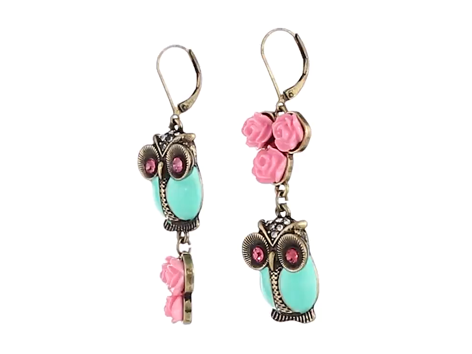 Betsey Johnson Women's Pet Shop Vintage Owl Non-Matching Earrings Blue/Pink Drop Earrings