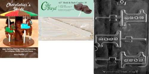 Cybrtrayd 'No.1 Boss Lolly' Miscellaneous Chocolate Candy Mold with 50 4.5-Inch Lollipop Sticks and Chocolatier's Guide