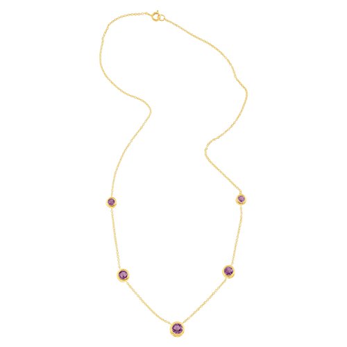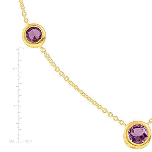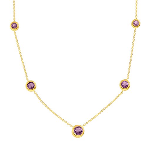 Challenge the classic pendant look with this studded necklace! Five round-cut natural amethysts, totaling 2 1/5 ct, are bezel-set in 18K gold-plated sterling silver along an 18-inch cable chain. Piece measures 18 by 5/16 inches.Feature