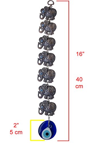 -. Binding : Kitchen -. Color : Blue -. EAN : 0787637899664 -. Feature : Handmade Glass by local artist / Because Each Evil Eye is uniquely handmade so, may vary slightly in appearance / Good Luck Charm, Against Evil Eye / 3000 years old believe "absorbs the negative energy" / Protect yourself and the beloved ones -. IsAutographed : 0 -. Label : Ebsem -. Manufacturer : Ebsem -. Model : EV 401 -. PackageQuantity : 1 -. ProductGroup : Home -. ProductTypeName : HOME -. Publisher : Ebsem -. Studio : Ebsem -. Title : 7 Elephant Evil Eye Wall Hanging Glass Charm Decorative Turkish - Greek - Jewish - Christian Christmas handmade ornament -. UPC : 787637899664