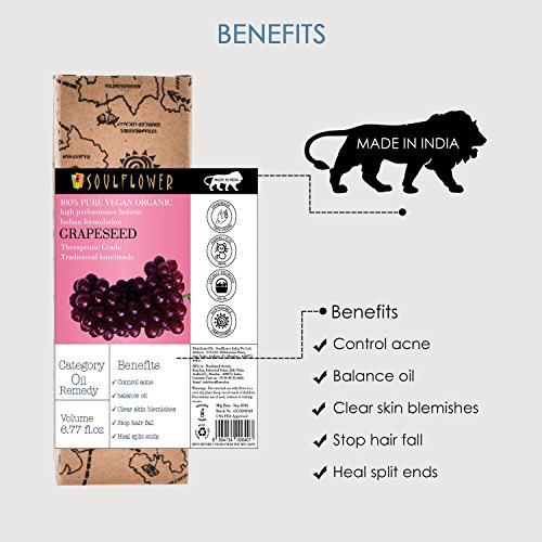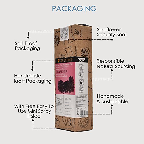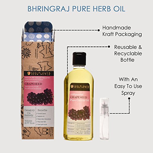 Grapeseed Oil By Soulflower 100% Pure Carrier Coldpressed Oil Skin toner Fights Acne Premature Aging Hair 6.77 fl.oz. Travel Friendly Spray
