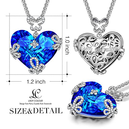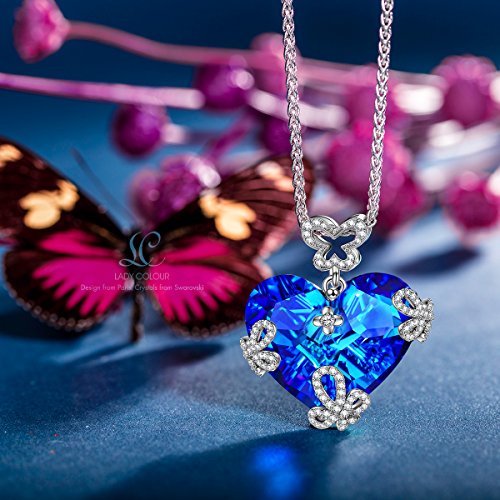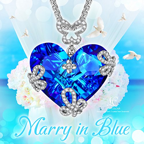 Swarovski Crystals Necklace, LadyColour "Marry in Blue" Heart Necklace Christmas Gifts Jewelry for women Girls Girlfriend Wife Daughter Mom Birthday Anniversary Gifts for Her Wedding Party Jewelry