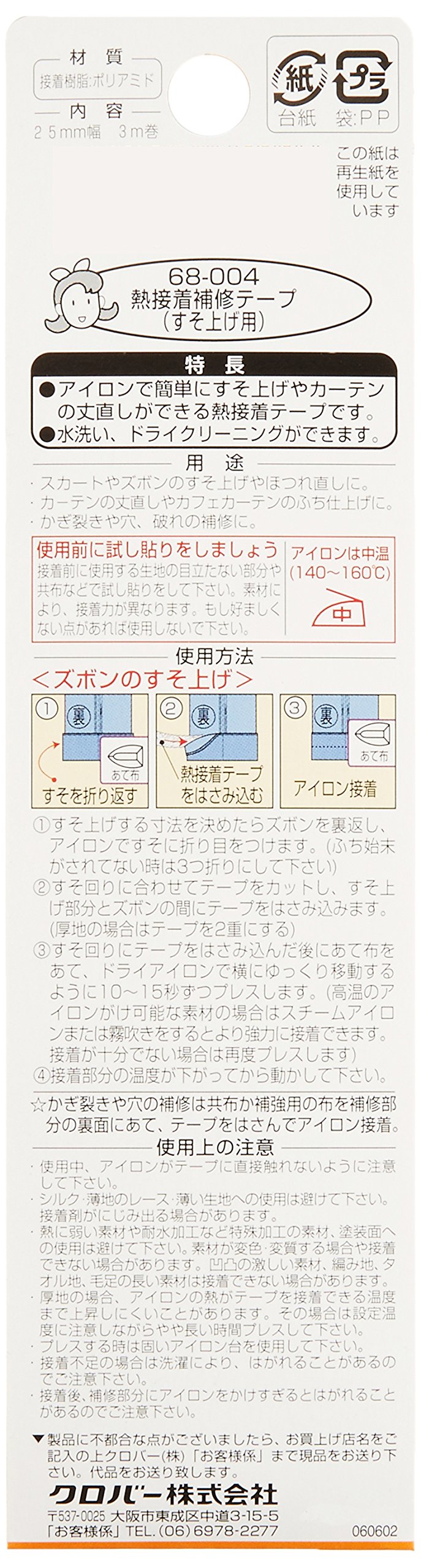 A 25 mm wide spider-like tape that is convenient for raising and re-dimensioning trousers and skirts.