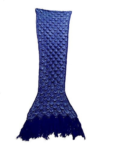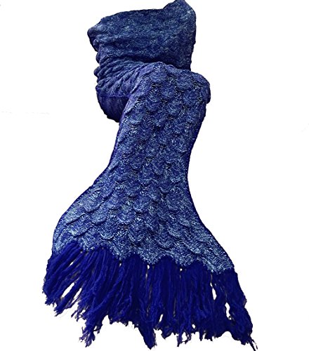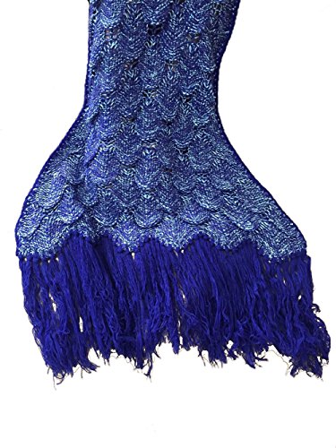 E-cowlboy 2016 Latest Handmade Knitted Crochet Mermaid Blanket Cozy Warm Mermaid Tail Shape Blanket with Scales Pattern and Tassels (Large, Royalblue)