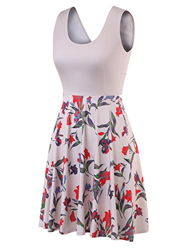 FSOOG Women Summer Beach Casual Flared Floral Tank Dress