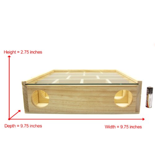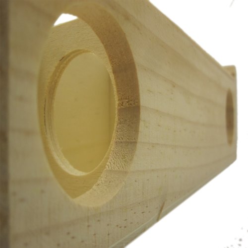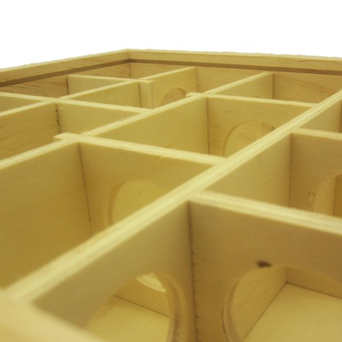 Ideal for hamster, mouse and other small furry animals. This small animal playground measures 9.75" x 9.75" x 2.75". Entrance holes are 1.5" in diameter. This maze has 16 entrance holes and 13 compartments, perfect for your small animal pet to relieves boredom and increases activity level. Fun playground made with natural wood material. Easy to clean and resistant to odors.