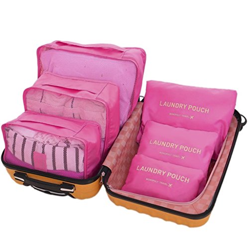 -. Feature : 6pcs packing cubes set, including: 3 x Packing Cubes, 3 x Laundry Pouch. Come with a Fakeface drawstring mesh bag as bonus gift / High quality packing cube set, made of durable nylon material, dustproof and waterproof. Easy to wash and with humanization two-way zippers design / 6 various size packing cube and laundry pouch set, save the space of your luggage/ bag, keep your stuff clean and in order. Mesh packing cube design, ventilated and let you can quickly located on the item you are needed / Dimension of each packing cube: 3 x Packing Cubes: L -- 40 x 31 x 12cm/ 15.7" x 12" x 4.7", M -- 31 x 28 x 12cm/ 12" x 11" x 4.7" , S -- 30 x 21 x 12cm/ 11.8" x 8.3" x 4.7", 3 x Laundry Pouch : L -- 34 x 27cm/ 13.4" x 10.6" , M -- 27 x 26cm/ 10.6" x 10.2", S -- 27 x 17cm/ 10.6" x 6.7" / Lightweight 6pcs packing cube set, storage your shoes, cosmetics, underwear, books, toiletries , medicine, in separate, save the space of your luggage, ideal for business trip, Traveling, Camping, Hiking, Backpacking and etc
