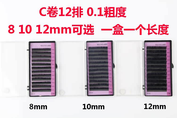 本款睫毛12排,C卷,有8,10,12mm可选,拍下留言长度,不留言随机发长度。此款睫毛国产纤维,毛质偏硬,适合练习使用,自己嫁接建议买好点的睫毛。赔钱赚信誉的产品不希望亲买回去给差评,介意的亲慎拍额