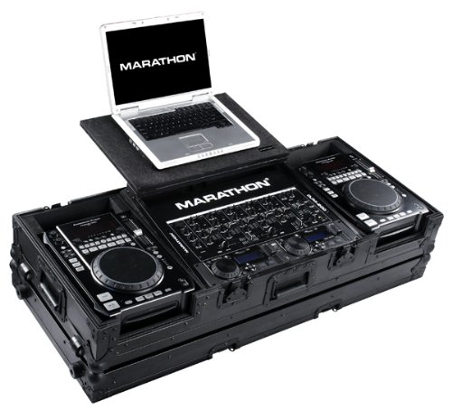 -. Binding : Electronics -. Brand : Marathon -. Color : Black -. Feature : Black coated finish Patent pending laptop shelf ATA 300 Style Spring action handles / Easy locking fit and tongue Heavy and powerful ball corners Industrial strength latches and rubber feet Dual anchor rivets / Accessible front panels 9mm laminated plywood Includes mounting hardware Cable port Durable sleek wheels -. Label : Marathon Professional -. Manufacturer : Marathon Professional -. Model : MA-CDI19WLTBLK -. MPN : MA-CDI19WLTBLK -. NumberOfItems : 1 -. PackageQuantity : 1 -. PartNumber : MA-CDI19WLTBLK -. ProductGroup : Musical Instruments -. ProductTypeName : SOUND_AND_RECORDING_EQUIPMENT -. PublicationDate : 2011-03-21 -. Publisher : Marathon Professional -. ReleaseDate : 2010-03-08 -. Studio : Marathon Professional -. Title : Marathon Flight Road Blk Series Case MA-CDi19Wltblk To Hold 2 X Medium Format CD Players Like Numark ICDx And a 19-Inch Mixer with Laptop Shelf -. Warranty : Manufacturers warranty: 1 year warranty