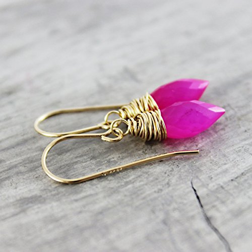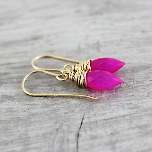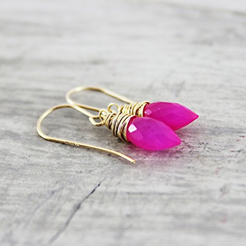 -. Title : Hot Pink Chalcedony Gold Fill Earrings