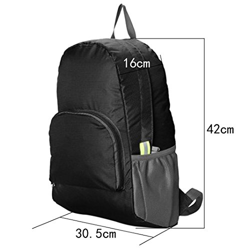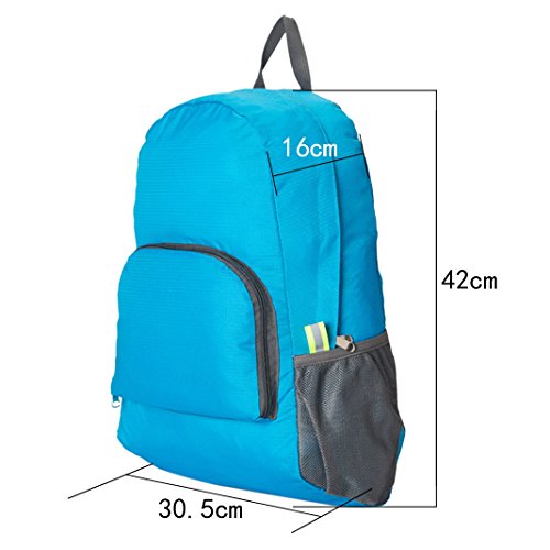 -. Feature : Ultra lightweight,breathable,waterproof and comfortable.The backpack is perfect for day-to-day use or occasional travel, and great gift for everyone,adjustable breathable straps make it easy and comfortable to carry for all day use / Lightweight and Compact:20L,Unfold size:16.53*12*4.72inches,fold size:9.05*5.51inches / Durable: Made from high-quality and water-resistant ripstop nylon fabric. It provides lightweight and long-lasting performance,Durable Metal Zipper across the backpack / This backpack has a large and roomy to carry your necessities and jackets,one front zipper pockets to hold small accessories such as pens and camera,two side pockets for water bottle or umbrella / Perfect for day trips, vacation, travel, day hikes, school, camping and shopping