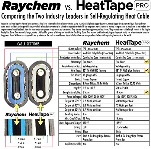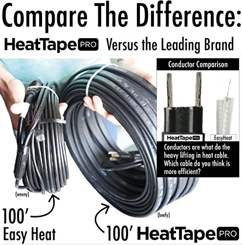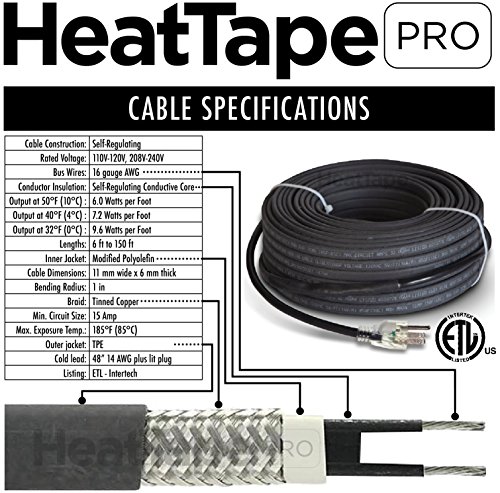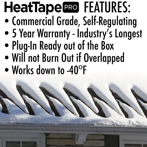 HEAVY DUTY: 120 Volt Plug-in Ready, Self-Regulating Heat Tape that is energy efficient by using outdoor temperatures to determine how much electricity is used during operation; commercial outer jacketing stands up to abuse
