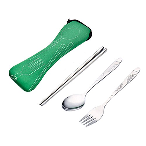 -. Title : Portable Stainless Steel Spoon Fork Chopsticks Tableware Set + Case, Army Green
