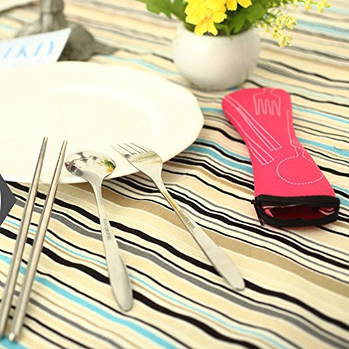 -. Feature : Material: Stainless Steel. / Features 3 in 1 design. / Comes with a storage case for easy carrying about. / Size: spoon: 18x4CM; fork: 18x2.5CM; Chopsticks: 18.5CM long. / Package includes: 1 set of Spoon Fork Chopsticks, 1 x Pull Chain Case.